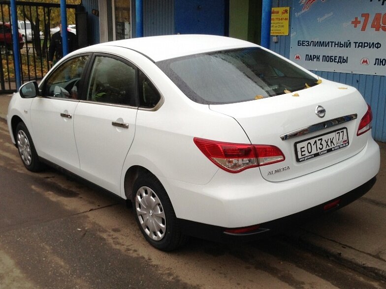 Московская прокатная компания «АрендаАвто-дмд» предлагает взять в аренду Nissan Almera IV MT белого цвета с механической коробкой передач по низкой цене.